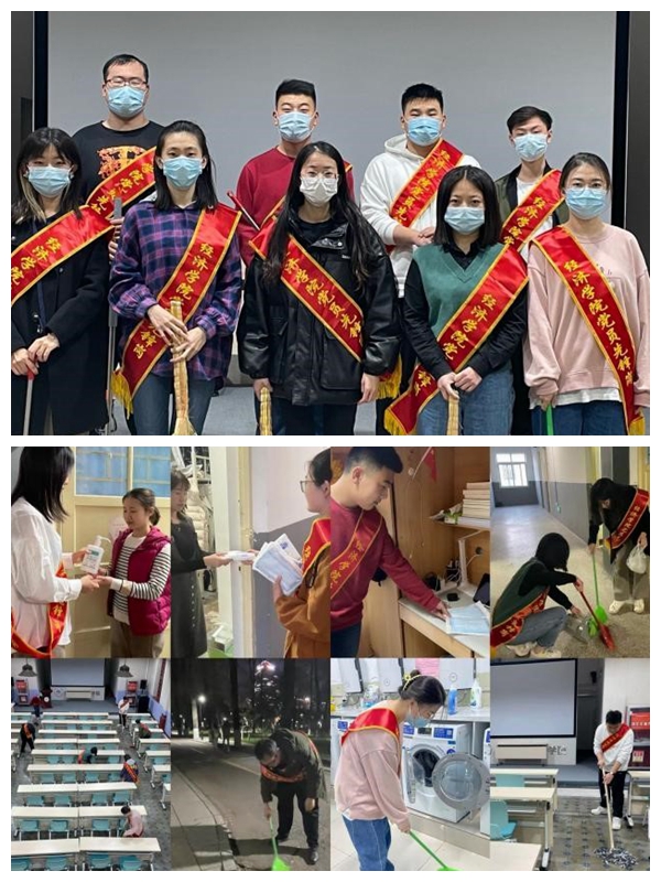 勇于担当,争做抗疫中坚力量。成立党员志愿服务突击队,充分发挥模范先锋作用,带领同学们参与“经志服务”疫情防控志愿服务活动,用实际行动投身疫情防控阻击战。组织党员志愿服务突击队开展“运物资”活动,为同学们送去口罩、免洗消毒凝胶等防疫用品,时刻关注同学们健康情况。开展“净宿舍”活动,对公寓大厅、楼梯、楼道、生活服务室等公共区域进行卫生检查及清扫,缓解疫情期间公寓工作人员压力,助力公寓楼公共环境卫生和公寓正常秩序的维护。组织“洁校园”活动,对教室、小树林、操场等公共环境进行清洁打扫,加强同学们的校园环境保护意识,为封闭管理期间校园良好环境的维持贡献力量。