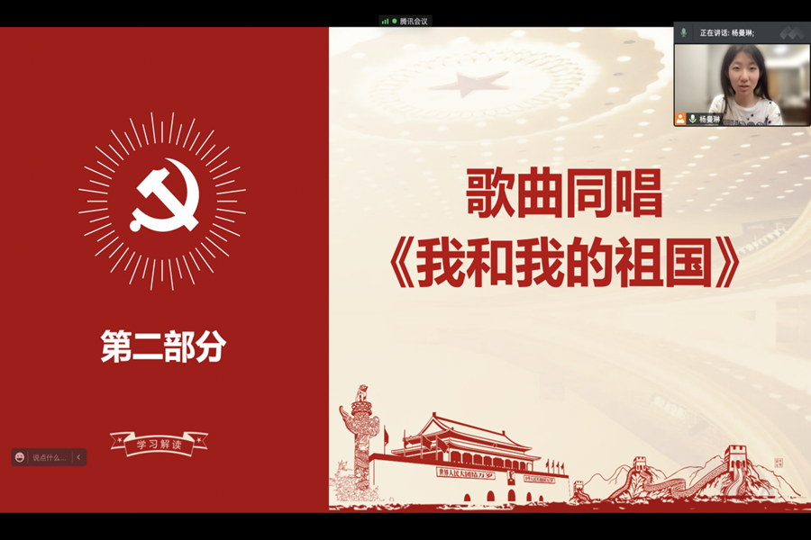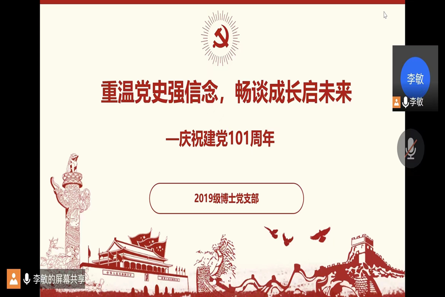 创新活动形式,推进庆祝建党活动有声有色。以赛促学,2020级本科生党支部、2021级博士党支部开展党史问答竞赛,通过别开生面、形式创新的比赛,充分调动了党员的积极性和主动性,引导广大党员在重温党的百年峥嵘中坚定理想信念、传承红色基因,将学习成果切实运用到实践中,将思想统一到党和人民的事业上来。经典研读,2020级博士党支部举办“诵读红色经典,传承红色精神”活动,组织支部党员阅读《梅岭三章》《红船颂》等红色经典,通过诵读经典片段,畅谈读后所感,带领党员同志回顾建党百年辉煌历程,重拾峥嵘岁月记忆、重温革命历史情怀,感受浓厚炽烈的初心使命,汲取强大无畏的精神力量。红歌传唱,2021级学硕第一党支部组织党员开展“不忘初心跟党走 昂首阔步新征程”红色歌曲传唱活动,通过唱响《我和我的祖国》等歌曲,唱出了锐意进取、薪火相传、改革创新的家国情怀和昂扬向上的精神风貌。光影留忆,机关党支部、2020级学硕第二党支部、2021级专硕第一党支部、2021级专硕第二党支部组织党员观看《1921》《建党伟业》《长津湖之水门桥》《党旗在一线飘扬》等红色主旋律电影、节目等,用“光影课堂”重温红色岁月,传承红色基因,赓续共产党人精神血脉,不断筑牢信仰之基、补足精神之钙、把稳思想之舵,以坚定的理想信念砥砺对党的赤诚忠心。
