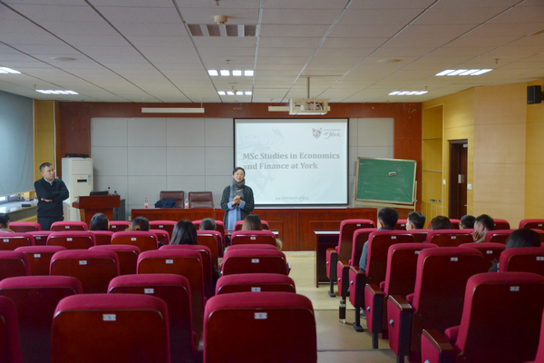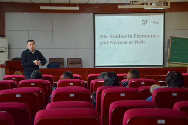 12月6日下午,英国约克大学1+1硕士联合培养项目宣讲会在中心校区知新楼聚贤报告厅举行。太阳成集团tyc41183流动岗特聘教授、英国约克大学经济系鞠源副教授为tyc41183太阳成集团师生带来了题为“MSc Studies in Economics and Finance at York”的宣讲。