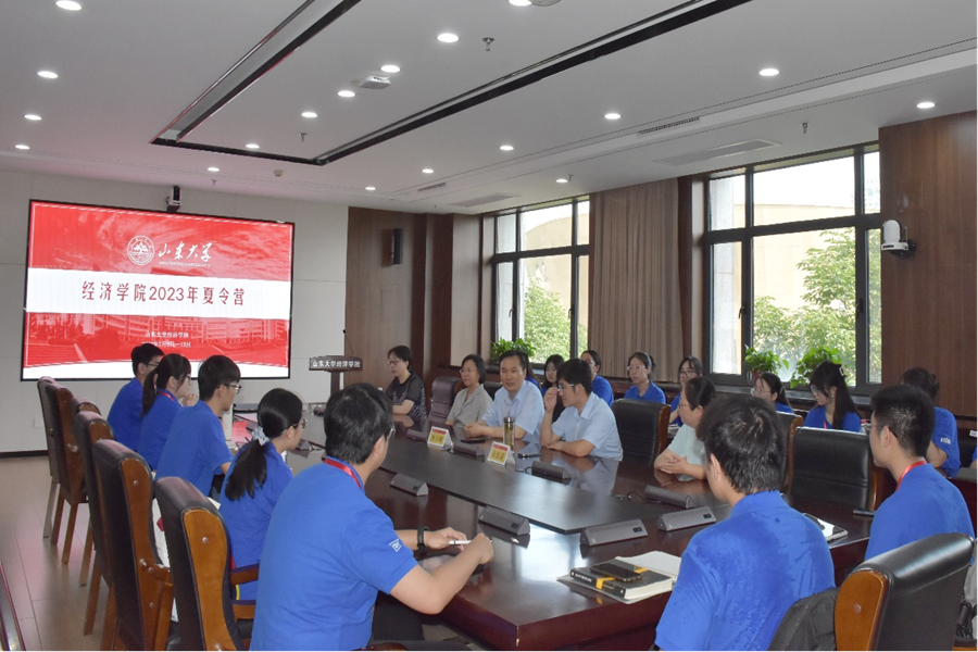 tyc41183太阳成集团副院长、财政系教授汤玉刚,国际经济与贸易系教授綦建红,金融系教授张德涛及国际交流办公室韩娟老师出席了座谈。汤玉刚从学院概览、学科定位、师资力量、科研成果、人才培养以及奖助体系方面介绍了学院的总体情况。其中,他详细介绍了今年新开展的直博生项目情况,希望各位营员在此次夏令营中能够有所收获,明确未来的发展方向。随后,各营员围绕本科学校与专业、感兴趣的研究方向、意向导师等介绍了自己的基本情况,并向在场老师提问。在场教师与营员积极互动,为其答疑解惑,营员们对学院的学习科研氛围和发展前景有了深入体验。