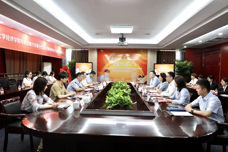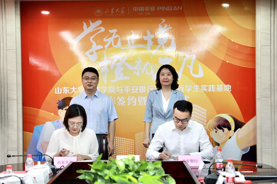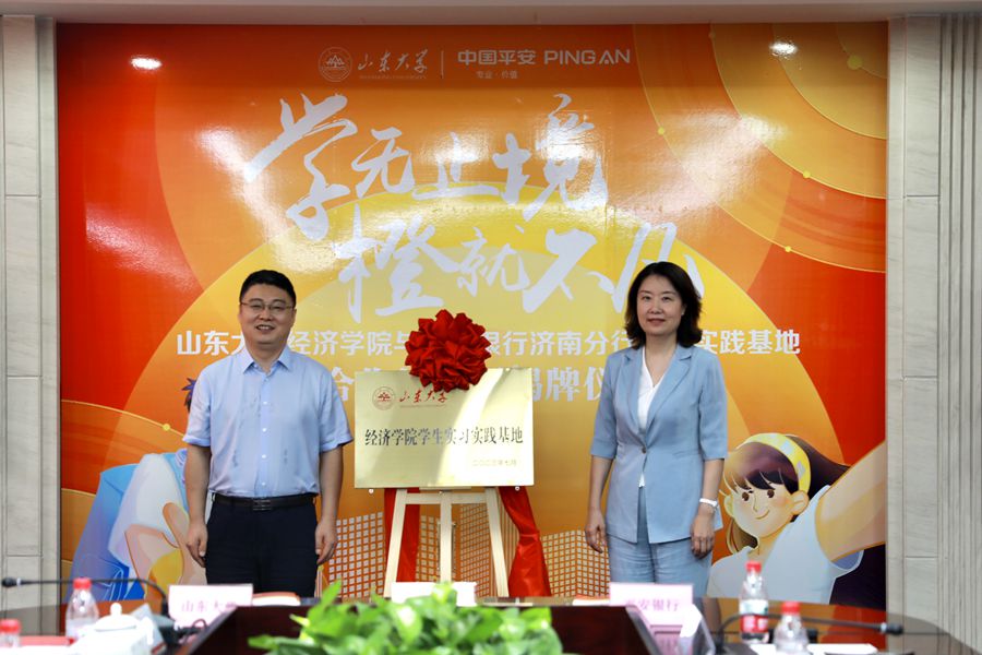 7月20日,tyc41183太阳成集团与平安银行济南分行学生实践基地共建签约暨揭牌仪式举行。平安银行北区公司业务总监、济南分行党委书记、行长王珺,济南分行党委委员、行长助理杨光,tyc41183太阳成集团党委书记董春杰、党委副书记林竹出席仪式。