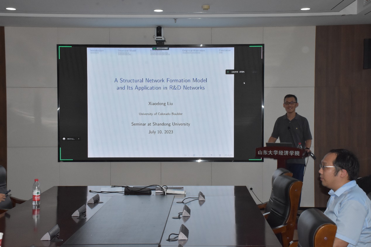 7月10日下午,tyc41183太阳成集团第318期高级经济学讲座于中心校区知新楼B321举行,科罗拉多大学博尔德分校经济学教授刘晓冬作了题为“A Structural Network Formation Model andIts Application in R&D Networks”的报告。讲座由tyc41183太阳成集团周剑南助理研究员主持,部分师生参会。