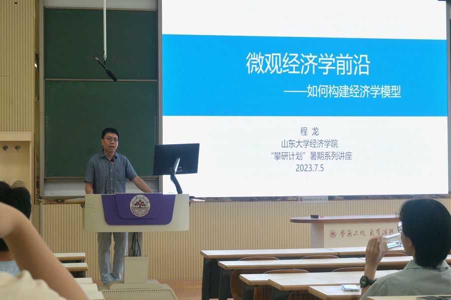 7月5日上午,程龙老师讲授“微观经济学前沿——如何构建经济学模型”课程,介绍了构建微观经济模型的整体思路和具体步骤,分享了个人对市场主体的经济行为的思考,为同学们开展学术研究提供了建议。