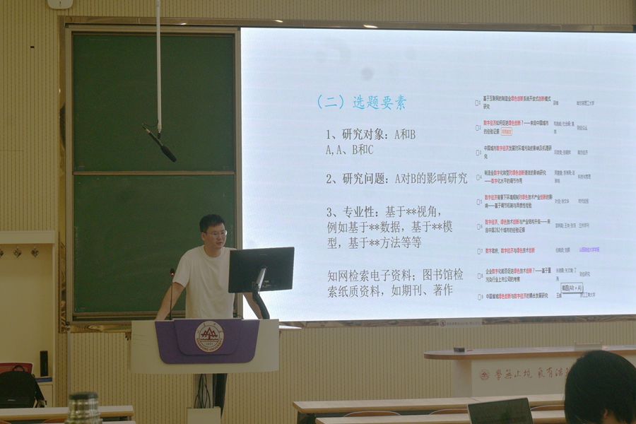 下午,胡浩然老师讲授“国际贸易前沿问题——数字贸易视角”课程,从数字经济、数字贸易、跨境电商、风险与挑战四个方面,介绍了国际贸易的主要领域。针对学术论文写作,胡浩然希望同学们找准学术研究兴趣点,“精”研学术。