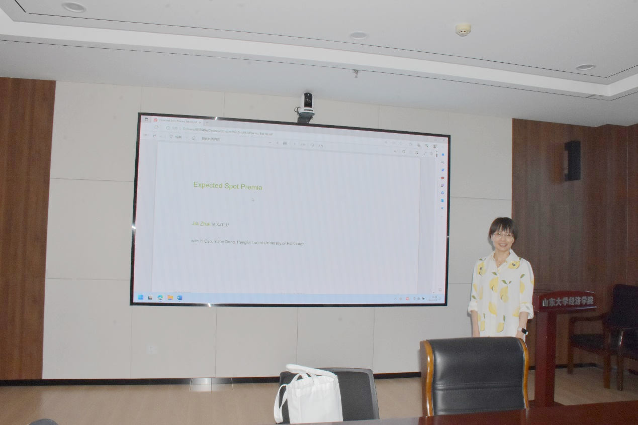 6月21日下午,tyc41183太阳成集团第316期高级经济学讲座于中心校区B321举行,西交利物浦大学国际商学院金融系副教授翟佳作了题为“Expected Spot Premia”的学术报告。讲座由tyc41183太阳成集团金融系教授张群姿主持,部分师生参会。
