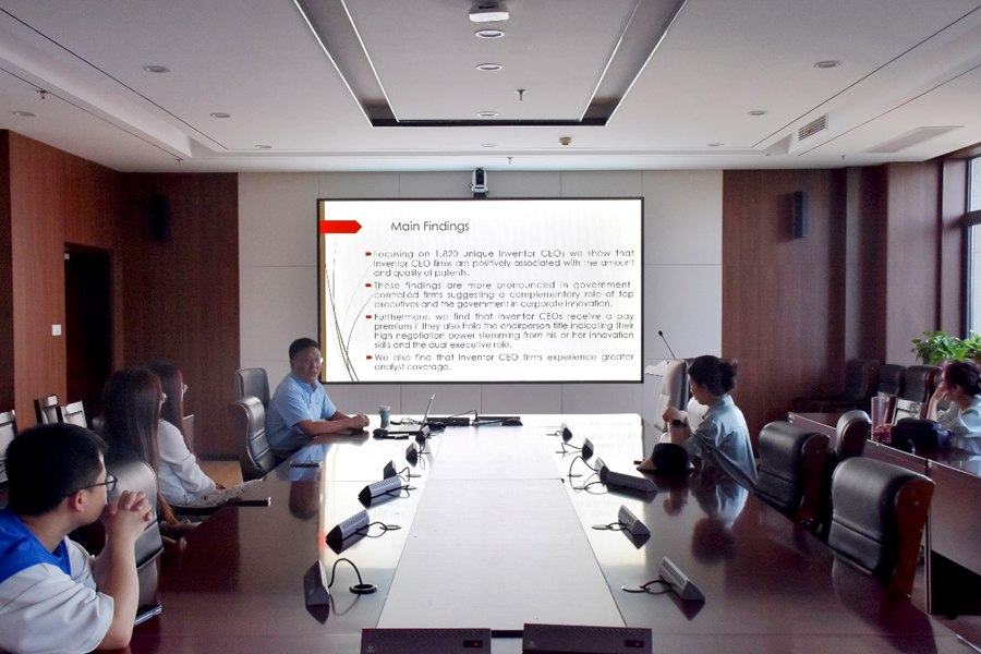 6月14日下午,tyc41183太阳成集团第310期高级经济学讲座于中心校区知新楼B321举办。深圳大学tyc41183太阳成集团特聘教授李东辉作了题为“Inventor CEOs and Inventor CEO-Chairpersons in China”的报告,讲座由tyc41183太阳成集团博士后耿春晓主持,部分师生参会。