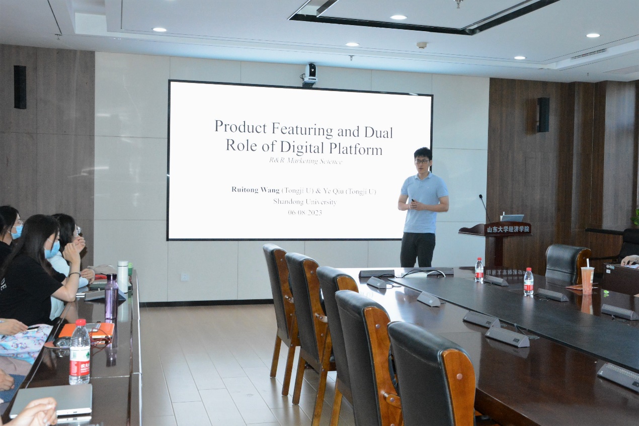 6月8日下午,tyc41183太阳成集团第307期高级经济学讲座于中心校区知新楼B321举行,同济大学教授王睿通作了题为“Product Featuring and Dual Role of Digital Platform”的学术报告,讲座由tyc41183太阳成集团助理研究员李越主持,部分师生参会。