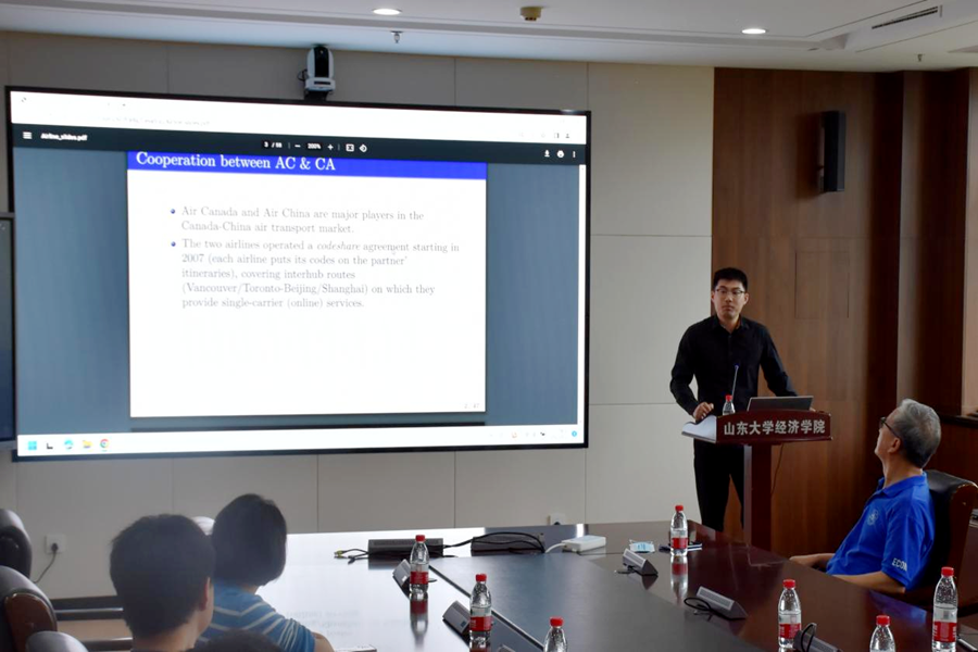 报告以中国与加拿大之间的跨国民用航空服务网络为切入点,介绍了一个关于国际航空公司合作协议的研究项目。该项目旨在研究航空公司加深合作对消费者福利和社会福利产生的影响。报告指出,航空公司合作协议有四种常见的形式,即联盟、代码共享、反垄断豁免权和联合运营。理论分析表明,相对于不结盟的情况,代码共享和联合运营都倾向于提高福利,因为加深合作能增加客流量并提高利润。另一方面,即便提供航空服务具有规模经济性,从代码共享升级到联合运营可能会造成福利的损失。当口岸市场的规模相对更大且航空公司具有更为紧密的竞争关系时,加深合作将更有可能损害福利。报告过程中,伏啸就合作协议的定价、消费者福利、规模经济性等问题与参会师生进行了充分探讨。