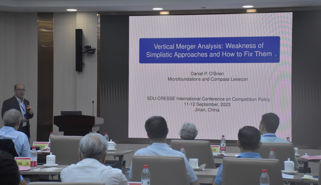 CompassLexecon高级顾问、加州大学伯克利分校兼职教授Daniel O’Brien以“Vertical Merger Analysis: Weaknesses ofSimplified Approaches and Solutions”为题,探讨了关于垂直合并分析简化方法和解决方案的弱点。他提到有很多的机构在分析垂直并购的时候,使用的是UVM(不受约束的垂直数学)的计算方法,而不是完整的或者严格意义上的经济学的方法。这造成了在分析方面的主要误差。他首先列举了机构在分析时所犯的错误,然后构建上下游模型,对纵向封锁做了解释和说明。他指出在一些情况下纵向封锁是无利可图的,对垂直合并效应的分析必须建立起相关模型,当垂直效应合并效应不同效果有所冲突时,需要构建模型对净效应进行排序。