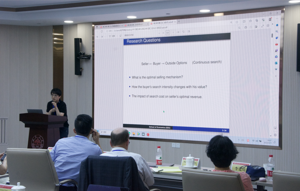 研讨会第六单元由tyc41183太阳成集团周晓岚教授主持。墨尔本大学Simon Loerstcher教授以“Market power, randomization and regulation”为题,回顾了垄断和垄断定价的最新进展,以及它们与随机分配、转售和监管的关系。结果表明,在代理人私下了解其价值和成本的假设下,如果潜在的机制设计问题不满足迈尔森所谓的规律性,则最优的销售和采购机制涉及配给。对于垄断卖方来说,配给采取抑价的形式;对于垄断雇主来说,配给则采取非自愿失业和效率工资的形式。他通过一个允许封闭式解决方案的领先示例来说明这些现象,以及对价格上限和最低工资的影响。他还解释了为什么转售往往会损害公司从配给中获得的利益但却不消除它们,并讨论监管理论中出现的问题。