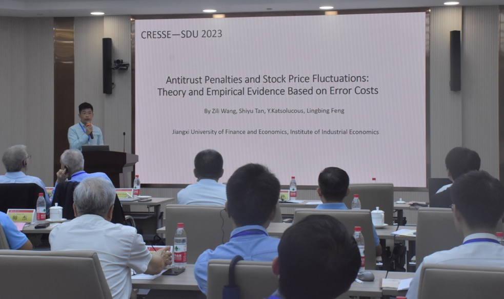 研讨会第七单元由东北财经大学产业组织与企业组织研究中心研究员于左主持。江西财经大学教授、产业经济研究院院长王自力以“Antitrust Penalties and Stock Price Fluctuations: Theory and Empirical Evidence Based on Error Costs”为题,讨论了如何从股价波动中获得相关信息,进而对反垄断执法不确定进行判断和比较。他指出反垄断审查时与反垄断判决时的股价变动差额反映了市场预期判罚与实际判罚的偏差,如果能够剥离其他因素的影响,相关股价波动就能衡量反垄断预期判罚偏差程度。他基于失误成本理论分析表明,执法者在反垄断审查中使用的经济分析证据强度与垄断行为的危害概率成反比,因而反垄断判决中的经济分析强度可以作为反垄断实际判罚的度量指标。实证分析显示,中国反垄断执法在2018 年统一执法后,执法偏差显著下降;对横向垄断协议的执法不确定性较其他垄断行为相对更高。