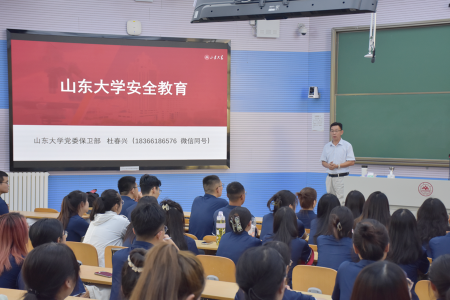 聚焦底线意识,讲好“法纪安全”警示课。学院邀请公安处杜春兴老师开展“法纪安全教育”专题讲座,他结合真实案例,从基础安全知识、火灾常识、校园火灾预防、常见消防设施、实验室安全、电动车安全、预防电信诈骗、交通及出行安全、网络安全、用电安全、公共场所安全、心理健康安全和国家安全等十三个方面针对如何应对突发事件,并现场演示灭火器的使用方法,教会同学们面对险情的处置方法,从而强化了同学们的安全意识,为创建安全稳定和谐的校园环境打下了坚实基础。此外,研究生辅导员徐姗姗带领全体新生,共同解读了研究生手册中的相关规章制度和管理规定,结合实际案例告诫同学们要做遵规守纪山大人。