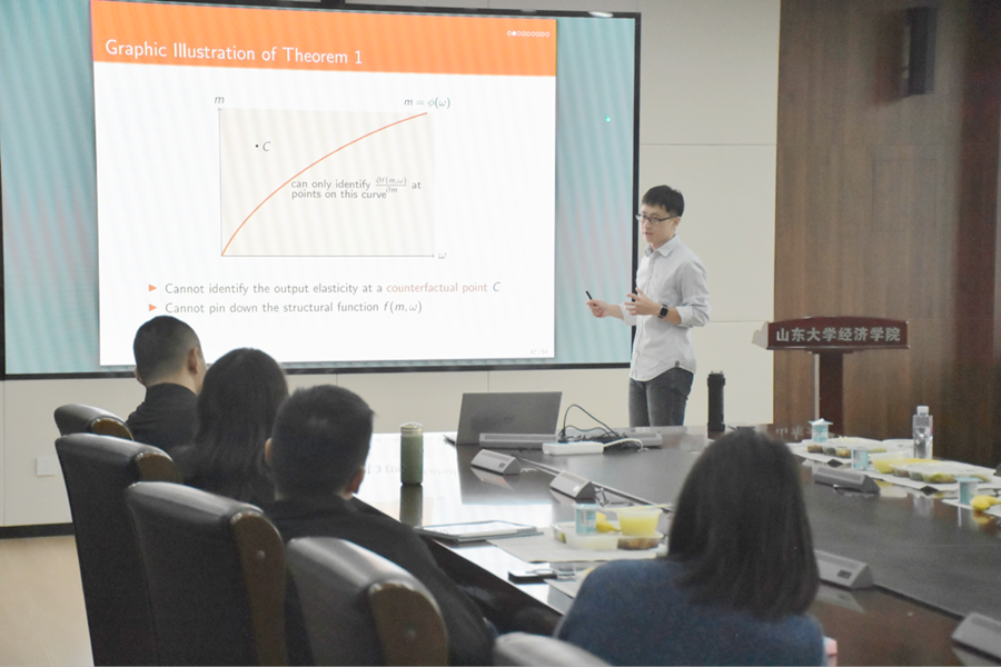 午餐会上,潘青松报告了总产出生产函数与不可分割生产率冲击的非参数识别,其非可分规范放宽了传统的希克斯中性假设,该假设已被证明与许多数据集不一致。报告指出,该方法可以捕捉到技术变化的偏差,而最近的研究表明这与许多重要的经济问题有关。潘青松将甘地等人2020年构建的识别方法推广到不可分割模型,并展示了产出弹性的识别方法。他指出,为了识别整个生产函数,研究强加了一个具有数据支持的同质性假设。鉴于不可分割的模型嵌套希克斯中性模型的事实,研究能够记录后者的错误指定偏差。最后,基于智利和哥伦比亚工厂层面的数据,研究的估计结果表明,希克斯中性模型高估了规模收益与劳动力的产出弹性,并对资本密集度产生了有偏差的估计。研究估算还表明,技术变革主要偏向于资本,而不是劳动力与中间投入。在报告过程中,潘青松与参会老师针对报告中的相关问题进行了充分的探讨。