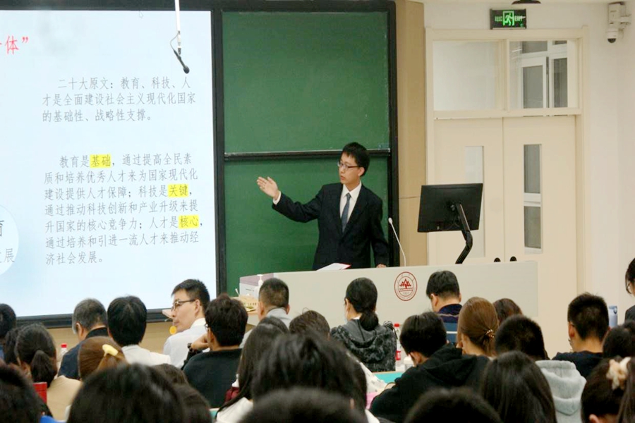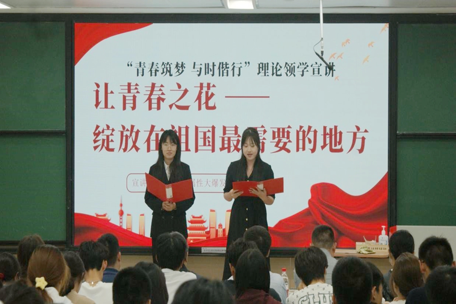 理论领学宣讲中,郝希文、白然竹密切配合,以“不啻微芒,造炬成阳”为题,道出她们对教育点燃希望之火的体会。钟证结合我国人才强国战略,讲述人才推动国家繁荣发展的基石作用。王淑敏结合“薛暮桥精神”,以“立足中国实际,做可堪民族大任的时代新人”为题,呼吁同学们担当使命责任,做有理想、敢担当、能吃苦、肯奋斗的新时代好青年。张忠炜结合党的二十大报告,分析教育、科技、人才“三位一体”的理论内涵和实践要求,并结合太阳成集团tyc41183发展实际,发出为国家战略贡献青春力量的号召。