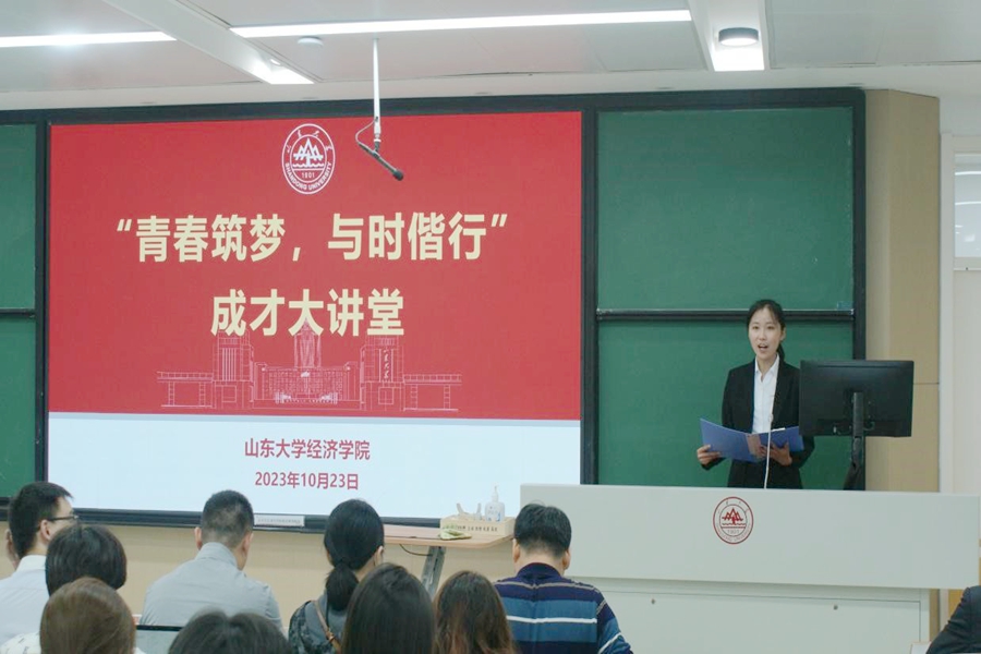 个人成长经历类中,杨家鑫结合个人在志愿服务、学生工作、社会实践等方面的经历,以“以吾辈之微茫,汇时代之骄阳”为题,讲述将小我融入大我,以荧烛末光增辉日月的责任担当。郑金泽以一首“不为谁而作的歌”为引,讲述入学两年来从迷茫彷徨到坚定目标方向的心路历程和成长经历,分享自己的青春成长之歌。李权乘分享了他与学生权益工作的故事,从权小益到提案大赛再到学代会,充分展现了学校学院与学生之间双向奔赴、共同发展、不断进步的美好关系。郝玲带领大家云游山大,以山大典型建筑串联起学校近年的发展成就,鼓励代代山大学子勇担使命,积极投身强院兴校、强校兴国事业。