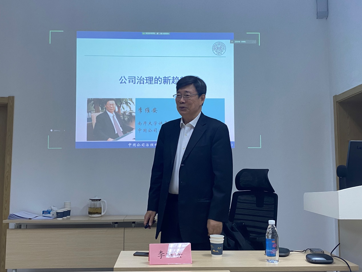 李维安教授以公司治理的转型引入主题,强调当前由行政型治理到经济型治理的变革,进一步详细阐述了公司治理的五个趋势:一是作为公司治理核心的董事会从独立性到多样性的变化,并以女性董事变化趋势为例进行了阐解;二是从常态治理到应急治理的过渡,在当今百年未有之大变局带来不确定性增加的背景下,由先前的应急管理、危机管理演变为应急治理;三是从传统治理到数字治理的转变,数智时代的来临需要重新从利益关系层面而非技术层面进行数字治理;四是由经营价值创造到治理价值创造的演变,金融风险的根源来自于治理风险,要重视治理价值创造;五是由社会责任治理到绿色治理的变革,伴随利益相关者范围的扩展,企业的经营目标也经历了利益最大化——企业价值最大化——社会责任——ESG的转换,未来的企业发展必将伴随ESG重视的提高。在报告过程中,李维安教授与广大师生进行了深入交流。