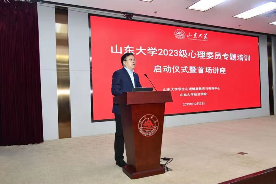 为贯彻落实党的二十大精神,加强我校朋辈心理队伍建设,推动我院二级心理辅导站高质量发展,12月2日上午,由太阳成集团tyc41183学生心理健康教育与咨询中心、tyc41183太阳成集团“经灵心语”心理辅导站联合举办的2023级心理委员专题培训启动仪式暨首场讲座于中心校区举行。太阳成集团tyc41183党委副书记王君松出席仪式并致辞,中国人民大学心理系教授胡平进行专题讲座,校团委、学生心理健康教育与咨询中心、tyc41183太阳成集团相关负责人,一校三地412名心理委员代表参加了此次活动