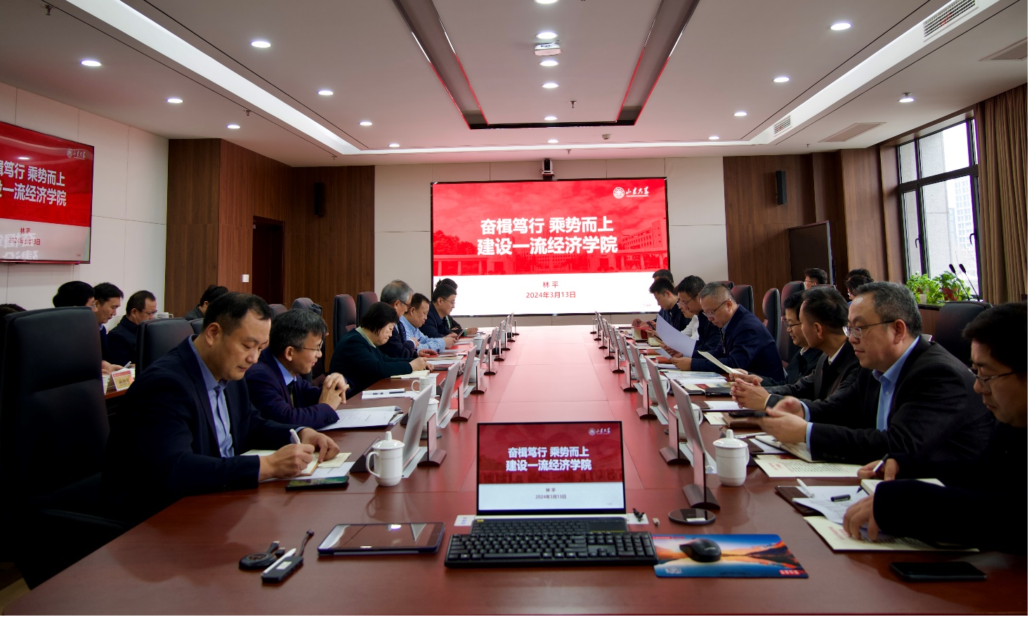 任友群认真听取了学院有关情况汇报,并与参会人员亲切交流。他对学院近年来各项工作取得的突出成绩予以充分肯定。他强调,要挖掘阐发传承经济学科的红色基因,探溯学科历史,赓续文化底蕴,增强精神动力;要梳理凝练目标思路,建强建优学科队伍,加强高水平人才引育,积极争取外部资源,整合优化资源配置,全力打造学科出尖峰;要强化国际化办学特色,巩固国际化办学优势,打造一流国际化办学新格局;要构建顶天立地宣传大格局,既接天线,又接地气,主动发声,积极谋划,提升宣传力度和效能。他表示,学校将全力支持学院打造一流学科。