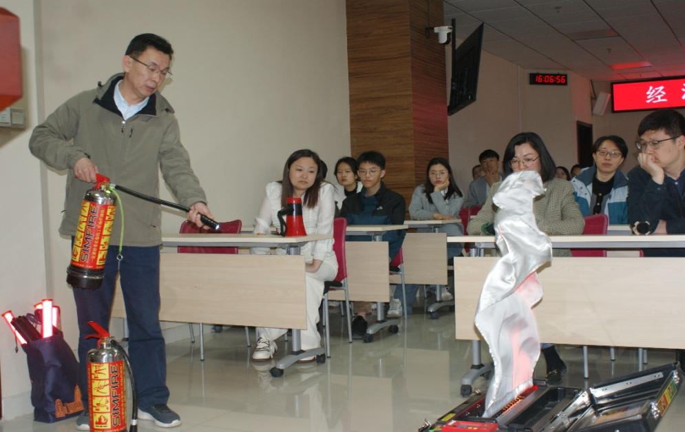 讲座中,杜春兴结合现实案例,运用现场演示等方式围绕火灾的特点,预防火灾的基本常识,如何有效排查安全隐患,日常用电用气用火安全,不同类型、不同阶段火情处置方式等进行了讲解,并结合办公楼人员密集的特点,就如何组织人员疏散、自救逃生、正确使用灭火器材的方法以及火灾现场自救逃生的技能等知识进行了详细介绍,引导广大师生摒弃侥幸心理,牢固树立消防安全意识。