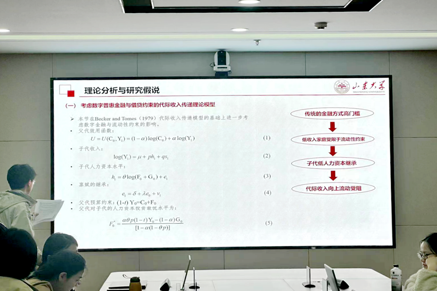 王旭阳以《数字普惠金融与代际收入流动——来自理论与队列双重差分的证据》为题,深入探讨了数字普惠金融发展对代际收入向上流动性的影响。点评老师从研究设计和论文结构方面提出了指导性建议。