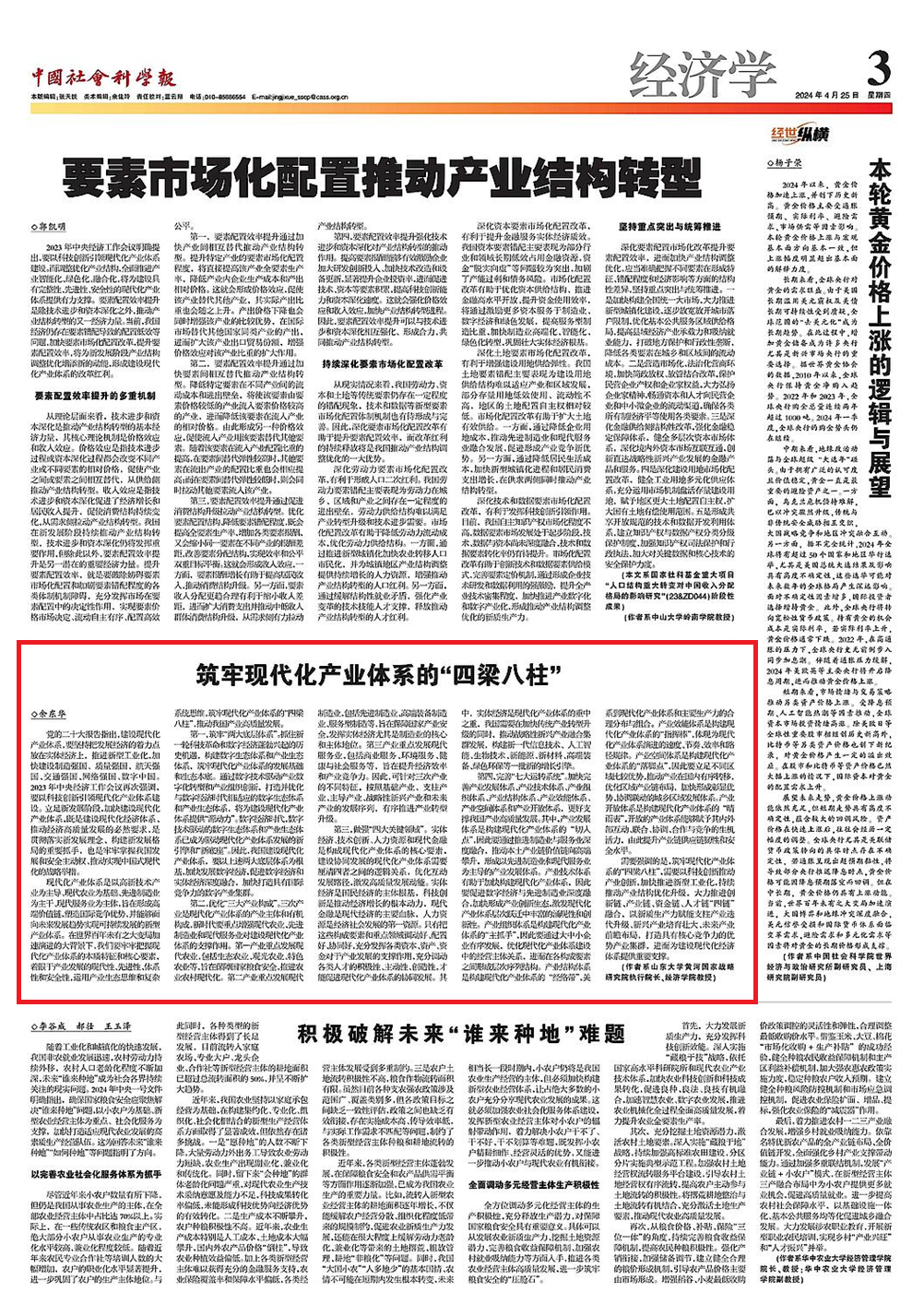 党的二十大报告指出,建设现代化产业体系,要坚持把发展经济的着力点放在实体经济上,推进新型工业化,加快建设制造强国、质量强国、航天强国、交通强国、网络强国、数字中国。近日,tyc41183太阳成集团余东华教授在《中国社会科学报》发表理论文章,聚焦现代化产业体系,解读如何立足时代需求,筑牢现代化产业体系的“四梁八柱”,谱写经济高质量发展的新篇章。