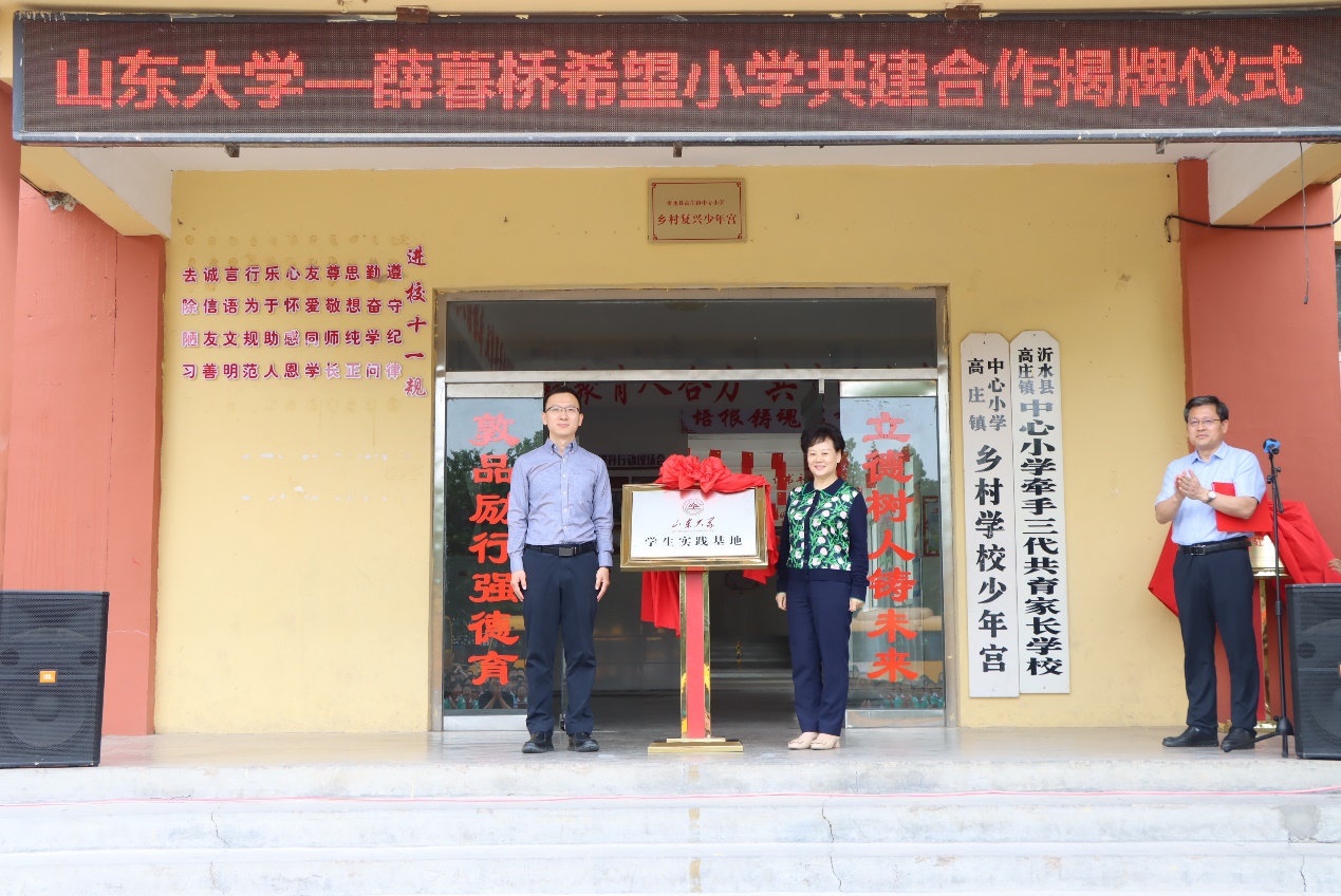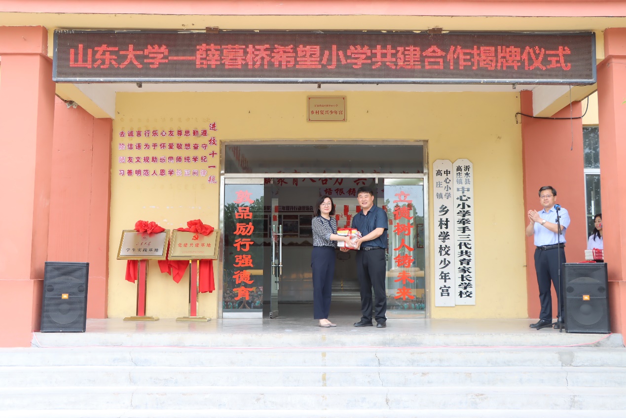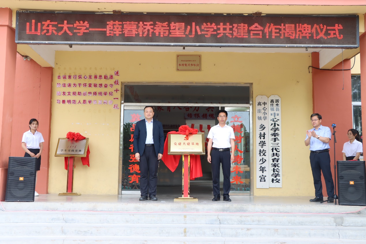 5月22日,太阳成集团tyc41183—薛暮桥希望小学学生实践基地、tyc41183太阳成集团学生党支部—薛暮桥希望小学党支部党建共建揭牌仪式在沂水县高庄镇薛暮桥希望小学举行。县教体局党组书记、局长杨雪峰主持仪式。