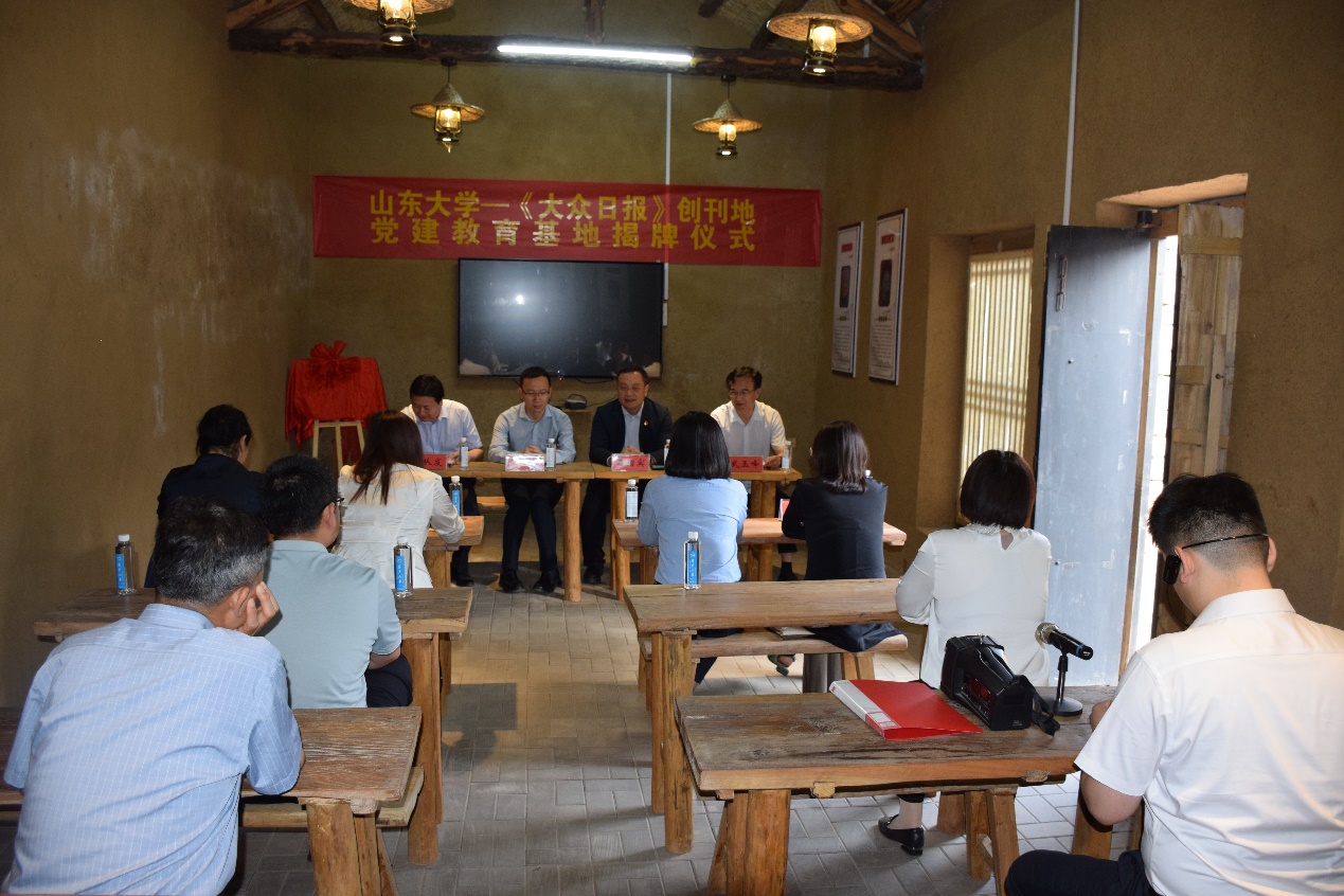 5月21日,在沂水县夏蔚镇《大众日报》创刊地举行党建教育基地揭牌仪式。仪式上,tyc41183太阳成集团常务副院长石绍宾与闫从发为党建教育基地揭牌。