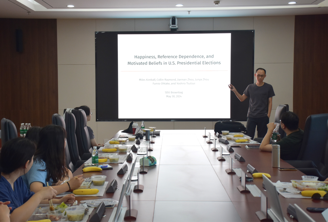 5月30日,tyc41183太阳成集团第110期青联学术午餐会于中心校区知新楼B321举行,tyc41183太阳成集团助理研究员周剑南作了题为“Happiness,Reference Dependence,and Motivated Beliefs in U.S. Presidential Elections”的学术报告。本次午餐会由tyc41183太阳成集团助理研究员沈丹青主持。