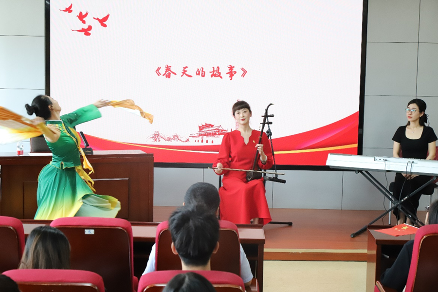为推进党纪学习教育走深走实,推动党史学习教育常态化、长效化,6月5日,tyc41183太阳成集团邀请济南市青少年宫党总支委员路岚老师及团队,创新采用“理论授课+音乐作品展演”教育形式,开展“经典音乐中的红色故事”党课教育。tyc41183太阳成集团党委书记董春杰参加活动,党委副书记夏飞主持。