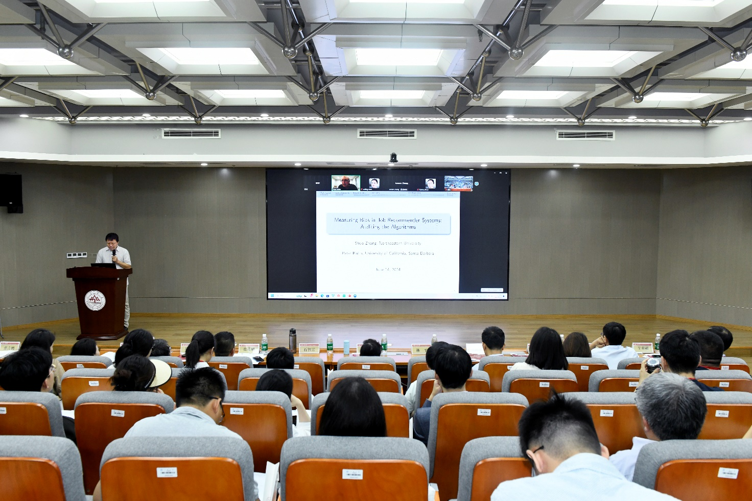 Peter Kuhn教授作题为“Measuring Bias in Job Recommender Systems: Auditing the Algorithms”的主旨报告,通过研究求职简历和招聘信息检验求职者的性别对其工作推荐的影响。研究发现在招聘信息、个人资质等相同的情形下,推荐给女性的工作工资较男性低1.5%,所需经验低7.2%,且只推荐给女性或男性的工作中所包含的工作要求存在较大差异,具有常见的性别陈规定型观念,而衡量这些工作要求的词汇对这种定型观念又具有强化作用。进一步研究发现,在求职者采取查看、点击、投递简历等行动之前,这些刻板印象和就业歧视便已经存在。