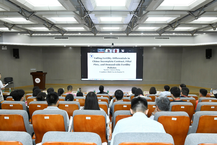 张俊森教授作题为“Falling Fertility Differentials in China: Incomplete Contract, Filial Piety, and Demand-side Fertility Policies”的主旨报告,从生育政策需求策略角度探究中国不同群体生育率差异收窄的原因,指出当前的需求侧生育政策更加注重社会公平,通过解决弱势家庭的教育问题缓解教育投资不均衡,进而缩小因受教育程度不同而引起的生育率差异。另一方面,农业转移人口进城落户政策的不断调整,使原本生育率较高的农村居民逐渐向生育率较低的城市居民靠拢,同时促进了人口分布的空间平衡,通过人员的代际流动降低了生育率差异化程度。