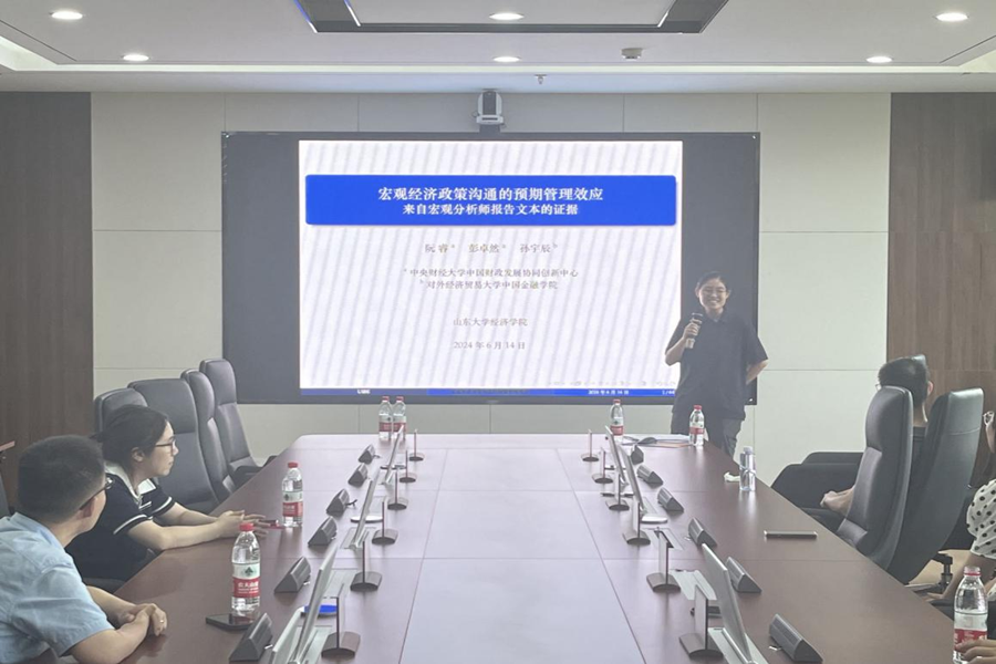 6月14日,tyc41183太阳成集团第二十五期金融学术讲座于中心校区知新楼B321举行。对外经济贸易大学中国金融学院副教授孙宇辰受邀作题为“宏观经济政策沟通的预期管理效应——来自宏观分析师报告文本的证据”的报告。讲座由tyc41183太阳成集团副教授许琳主持。