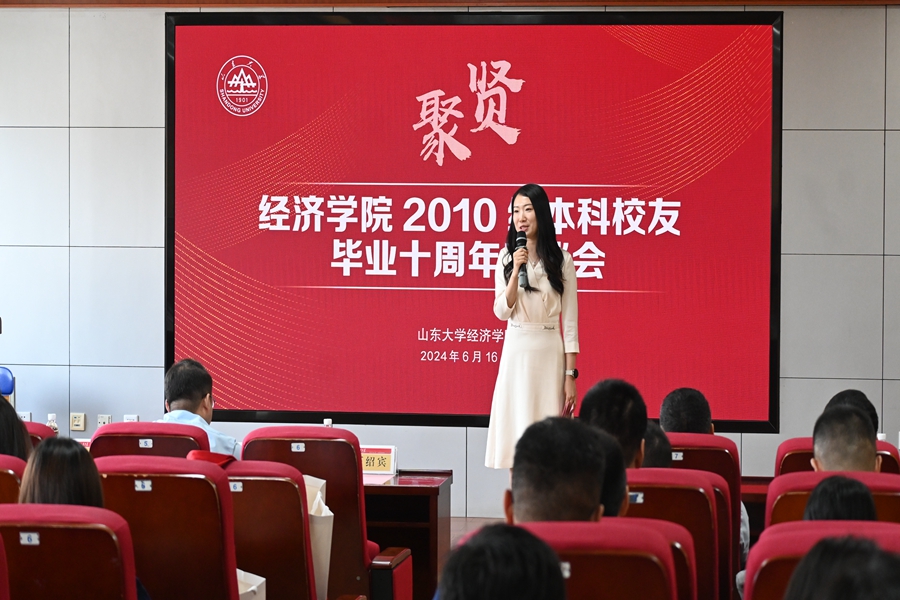 董春杰在致辞中向校友介绍了近十年来学校学院在人才引育、学科建设、科研创新、服务社会、国际交流合作等方面取得的卓越成效,对关心和支持学校学院发展的各位校友表示由衷的感谢。他表示,校友们在各自的岗位上兢兢业业、履职尽责、勇于担当,为校友们的成绩斐然感到骄傲,也期待校友们能够继续传承“家国情怀、担当精神、崇实品格、创新素养”的山大基因,用坚守和创新积极弘扬山大精神,为国家和社会发展贡献力量。