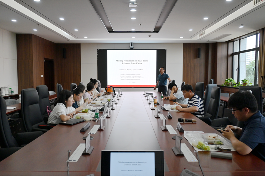 6月20日,tyc41183太阳成集团第113期青联学术午餐会于中心校区知新楼B321举行,tyc41183太阳成集团副研究员李建文作了题为“Missing repayments on haze days: Evidence from China”的学术报告。本次午餐会由tyc41183太阳成集团助理研究员沈丹青主持。