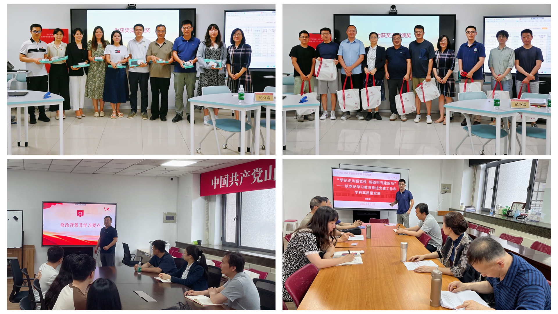 “七·一”前后,各教工党支部书记以“学纪正风强党性 砥砺担当建新功”为主题,将党纪学习教育与学习贯彻学校第十五次党代会精神相结合、与弘扬践行教育家精神相结合、与推动基层党组织“一融双高”相结合,邀请联系支部和系所的学院领导同讲一堂党课。在教育引导广大党员不断用党规党纪校正思想和行动的基础上,围绕党建与学科融合发展、拔尖创新人才培养、青年人才引育、高水平科研成果产出等方面展开深度研讨,将党支部工作“四个一”特色项目和系所“六个一”目标任务全面融合,将学习成果转化为推动学院各项事业高质量发展有力支撑,有力推动党纪学习教育走深走实、见行见效。