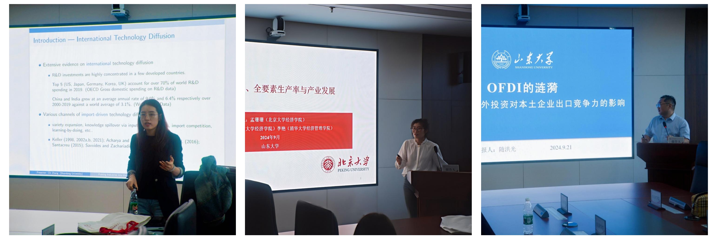 第二阶段会议分论坛一由tyc41183太阳成集团副教授随洪光、助理研究员张弛共同主持。张弛作主题为“Putting Industries into the Idea-flows Model: A Quantitative”的报告,通过构建一个多国家、多行业的知识扩散动态模型,并以量化结果揭示了日本在全球知识传播中的主导作用。北京大学tyc41183太阳成集团博士后孟珊珊作主题为“企业数字化发展、全要素生产与产业链溢出效应”的报告,分析了数字经济对全要素生产率与产业发展的影响、数字化投入对企业发展以及上下游产业链的溢出效应,认为数字化投入会促进下游企业成长,强调通过发展数字经济提高全要素生产率对于国家发展具有重要意义。随洪光副教授作主题为“OFDI的涟漪:先行企业海外投资对本土企业出口竞争力的影响”的报告,讨论了先行企业OFDI对本土企业出口产品竞争力的影响,指出先行企业海外投资促进了通过质量机制和声誉机制提高了本土企业的出口竞争力,出口市场的进入退出效应提高了资源配置效率,示范和跟随反应提高了在位企业的出口概率。