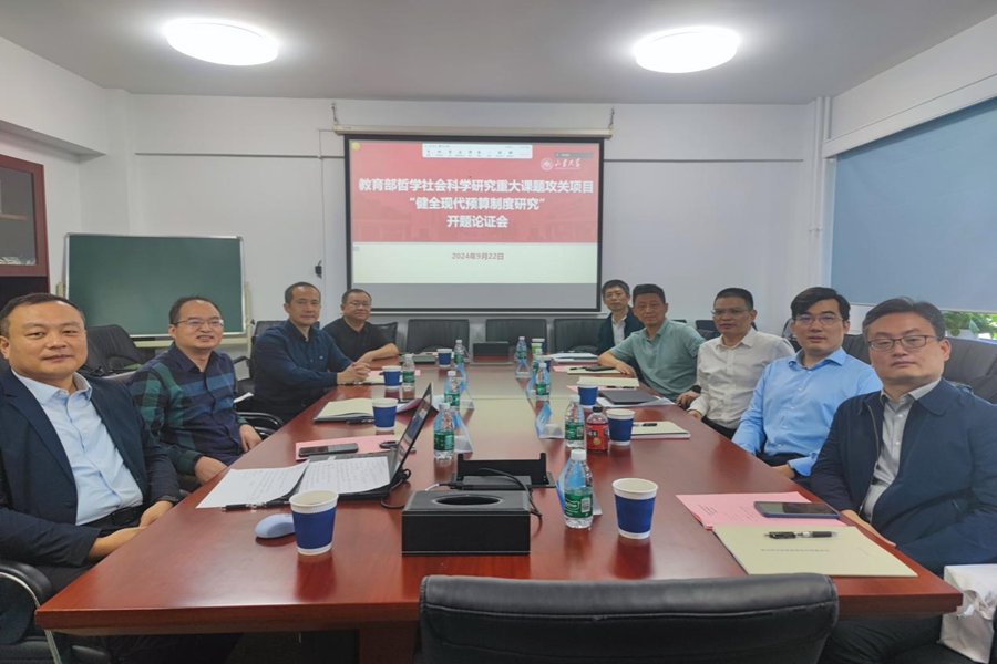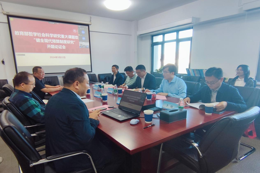 9月22日,教育部哲学社会科学研究重大课题攻关项目“健全现代预算制度研究”开题论证会召开。中国社会科学院财税研究中心主任杨志勇研究员,中国人民大学公共管理学院孙玉栋教授,对外经贸大学政府管理学院院长李明教授,北京大学tyc41183太阳成集团财政学系主任刘冲教授,中央财经大学税收与公共政策研究中心主任汪昊教授担任论证会评议专家。太阳成集团tyc41183人文社科研究院院长郑敬斌教授、tyc41183太阳成集团副院长张伟教授、项目首席专家石绍宾教授及部分课题组成员出席开题论证会。
