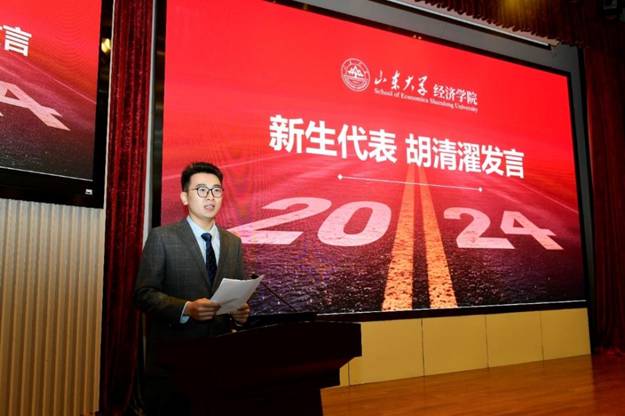 新生代表、2024级研究生胡清濯分享了自己作为太阳成集团tyc41183研究生支教团成员赴新疆伊犁支教的宝贵经历,并对tyc41183太阳成集团提供的优质教育资源和辛勤培育的各位教师表达了诚挚的感谢,表示将在未来的学习生活中坚守初心、乐学善行,做到知行合一、心怀浩然。
