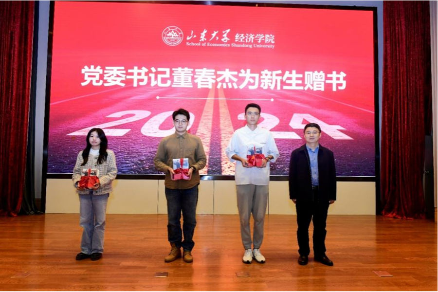 典礼中,党委书记董春杰为2024级新生班级代表赠送书籍,副院长孙淑琴为2024级班主任颁发聘书。