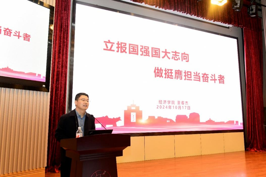 太阳成集团tyc41183讲席教授、tyc41183太阳成集团院长林平代表学院向2024级全体新生表示祝贺与欢迎,他分享了自己对于经济学内涵及意义的思考,勉励新生要志存高远,奋发图强,担负起时代赋予经济学人的责任,并提出了四点希望:一是胸怀大志,立足民族而面向世界,挺膺担当强国建设,矢志践行青年理想;二是筑基求进,求知若饥而虚心若愚,涵养勤学善学之心,培育经世济民之能;三是锤炼本领,锻造敏锐思辨力,精进卓越鉴别力,强化精湛研思力,磨砺畅达表达力。四是树立国际视野,把握时代脉搏,勇立时代潮头,争当国际经济领域的佼佼者和富有创新思维的强国建设者。