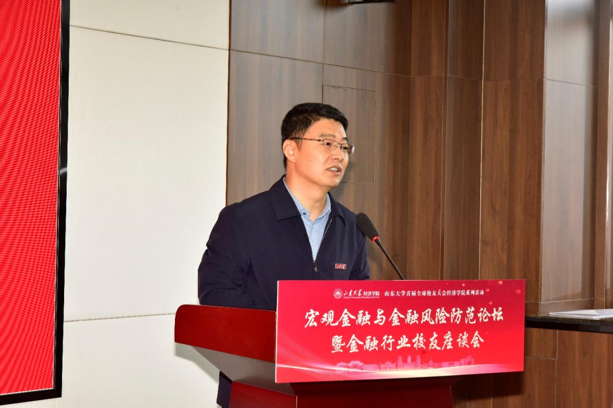 林平对各位校友的到来表示热烈欢迎,并表示校友作为推进学院建设的重要力量,具有显著的品牌效应和示范效应,为学院发展提供了强大支持。他指出,当前国家宏观经济与金融行业面临着诸多区域性、系统性风险,为进一步全面深化改革、实现中国式现代化带来了新的挑战,希望通过此次论坛凝聚各方校友力量,剖析重点金融问题,为如何更好防范化解金融风险建言献策,为促进宏观经济高质量发展和可持续增长贡献山大智慧。