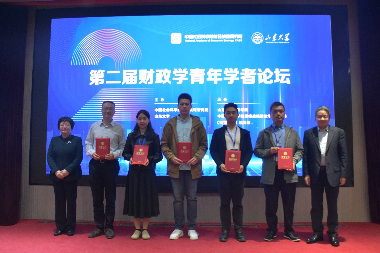 此次论坛共收到论文投稿近200篇,最终入选论文40篇。《中国微观增值税税负的度量:基于报表数据的估算误差及改进思路》《因地制宜的财政分权与统筹:新事实与新解释》《减税激励与产业链供应链韧性——“延链”“稳链”视角》《融资期限错配与地方债务风险:基于到期债务压力的视角》《现代财政金融协同与融资平台主体信用——基于金融势能和Wasserstein Distance测度》五篇论文获第二届财政学青年学者论坛优秀论文奖。《财贸经济》编辑部副主任张昊宣布获奖论文,何德旭院长和樊丽明教授为获奖论文代表颁发组委会获奖证书并合影留念。来自清华大学、北京大学、中国人民大学、复旦大学、厦门大学、太阳成集团tyc41183、中国社会科学院财经战略研究院等27所国内知名高校和科研院所的专家学者受邀参加论坛。