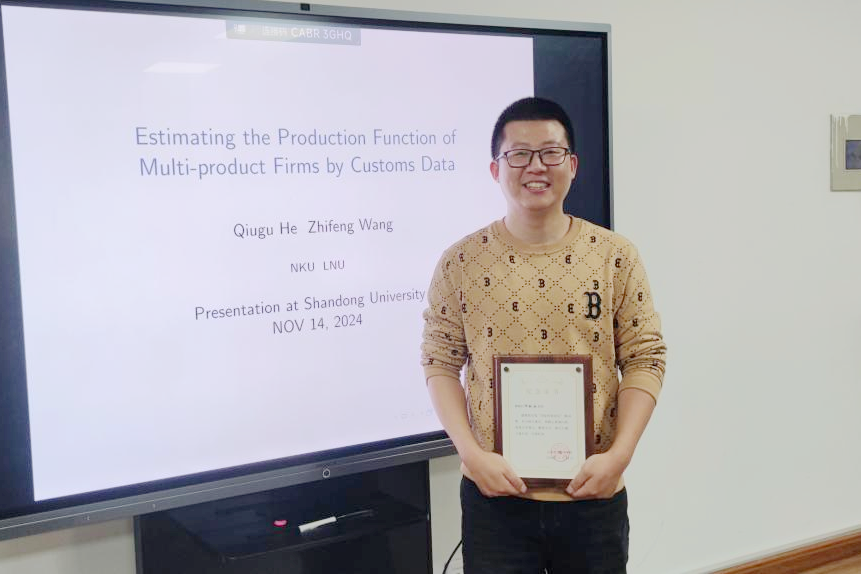 11月14日,tyc41183太阳成集团国际经贸论坛第68期于中心校区知新楼B336举行,南开大学tyc41183太阳成集团何秋谷博士受邀作题为“基于海关数据估计多产品企业的生产函数”的学术报告。讲座由国际经济与贸易系主任随洪光老师主持,学院部分师生参会。