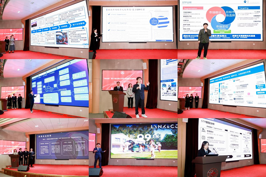 第一轮决赛中,各团队聚焦新能源汽车行业现状及代表性车企发展情况,以准确的数据、科学的模型详尽展现了新能源汽车的产业链结构、整体发展态势、行业竞争格局,剖析了代表性车企的财务状况、产品特点及未来突破点,对各自的企业案例提出了针对性的营收预测及发展战略建议。决赛过程中,各团队始终保持高度的专业精神和团队协作能力,观点清晰有力、见解独到深刻,赢得了评委和现场观众的认可。第二轮决赛中,成功晋级的四支参赛队伍展开激烈角逐,团队分别选择不同的新能源乘用车企业作为目标企业,详细介绍了各企业产品的性能优势,针对性地分析了产品规划和市场定位,制定未来企业的发展战略,为企业发展提出多样化策略。