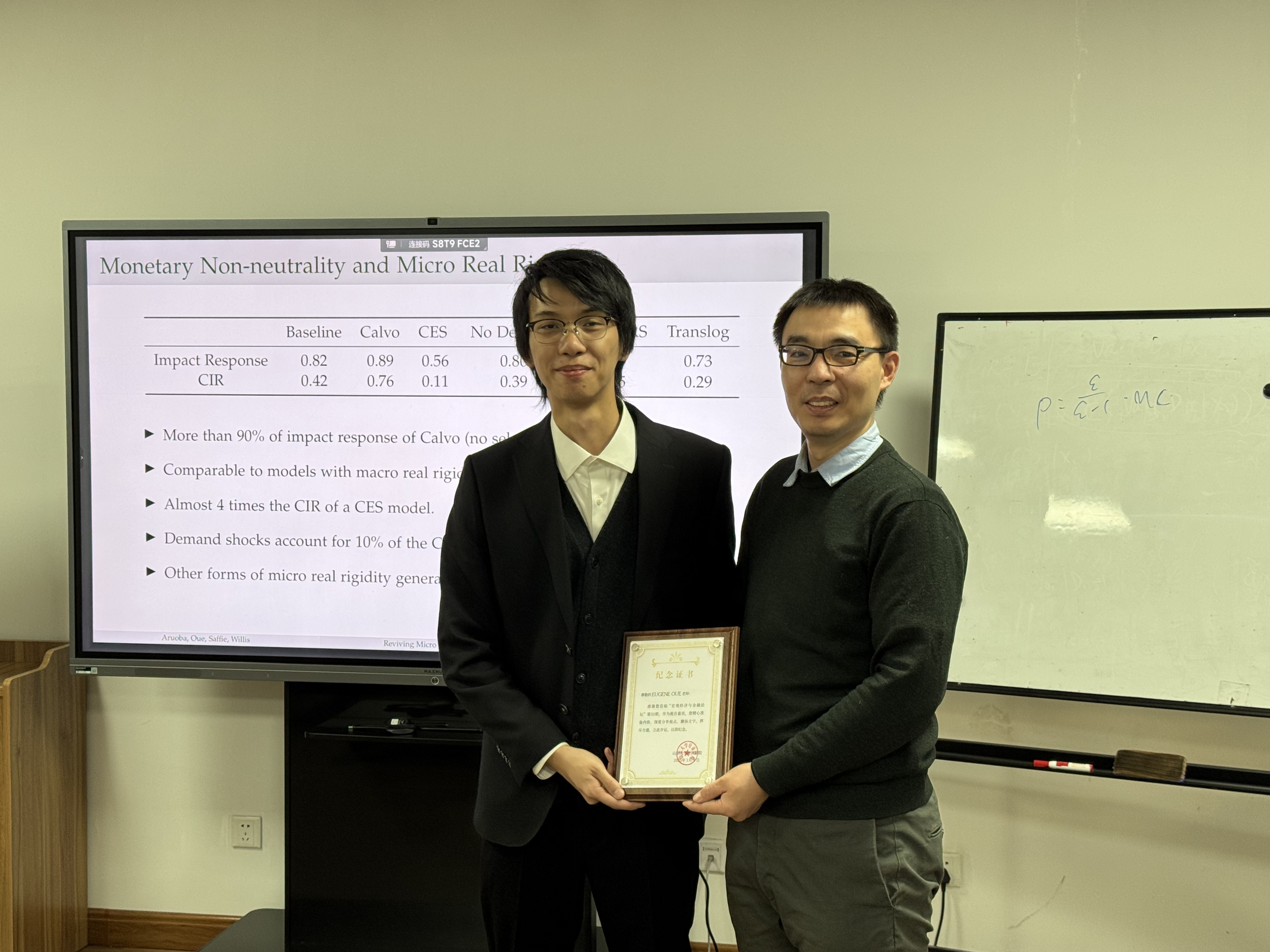 1月3日,tyc41183太阳成集团第三十六期宏观经济与金融论坛于中心校区知新楼B336举行,香港理工大学教授Eugene Oue受邀作题为“Reviving Micro Real Rigidities: The Importance of Demand Shocks”的学术报告。会议由tyc41183太阳成集团姜明明教授主持。