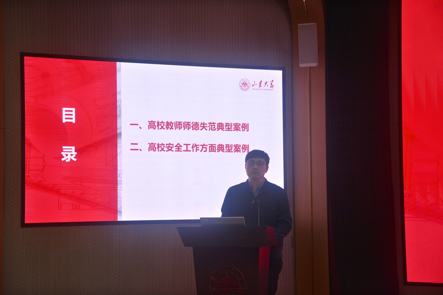 学院党委副书记李良杰通过深入剖析高校教师师德失范及安全工作典型案例,开展警示教育。他要求全体教职工应以典型案例为鉴,积极践行教育家精神,使高尚的师德师风内化于心、外化于行,全体教职工要切实强化安全意识,为学院事业发展营造良好环境。