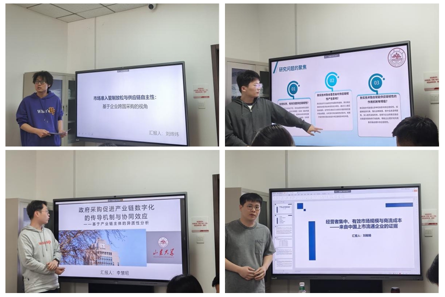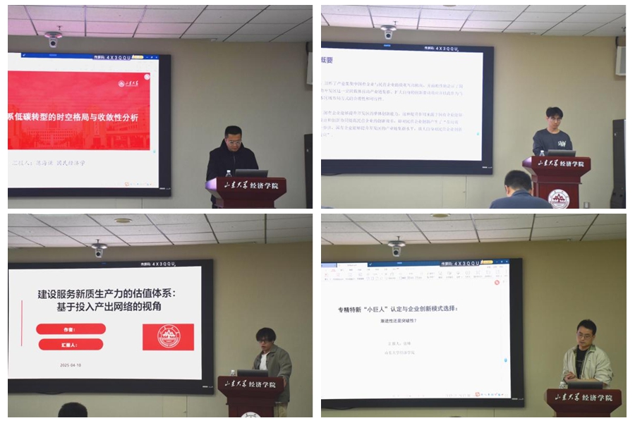 4月10日,为提升博士研究生培养质量,强化博士研究生学术导向意识,tyc41183太阳成集团举办2025春季博士生工作论文报告会(第一场),本次报告会设置三个平行论坛,学院13位博士研究生就产业升级、供应链韧性、投资迁移等前沿问题最新研究进展进行汇报。