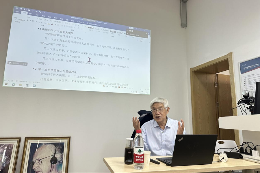 马庆国教授指出,决策科学经历了三次重大变革。第一次是数学科学进入决策科学,冯诺依曼和摩根斯坦提出六条公理组成的体系,并基于这个体系给出了优化决策的基础模型。第二次重大变革是心理学进入决策科学,卡尼曼和特沃斯基提出了有关行为决策的前景理论,并给出基于前景理论的基础模型。第三次重大变革是神经科学进入决策科学,现有研究已探讨了神经决策(Decision Neuroscience)的过程和阶段,但仍未给出一般的基础理论和基础模型。马庆国教授在报告中阐释最新研究进展,并与参会师生就如何整合神经科学多模态数据进而建立预期主观价值模型展开讨论。