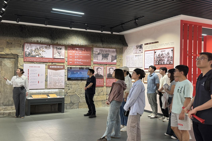在博物馆讲解员的引导下,师生党员沉浸式回顾了山东革命根据地金融事业的发展历程。从北海银行发行首套货币的珍贵文献,到战时经济政策的档案手稿,从“扁担银行”“马背银行”的复原场景,到红色金融家的人物事迹展,一件件展品生动展现了革命先辈在物资匮乏、战火纷飞中开创金融事业的艰辛探索,师生们纷纷感慨:“红色金融史是党史的重要组成部分,北海银行‘服务军民、稳定经济’的实践,至今仍为金融改革提供深刻启示。”