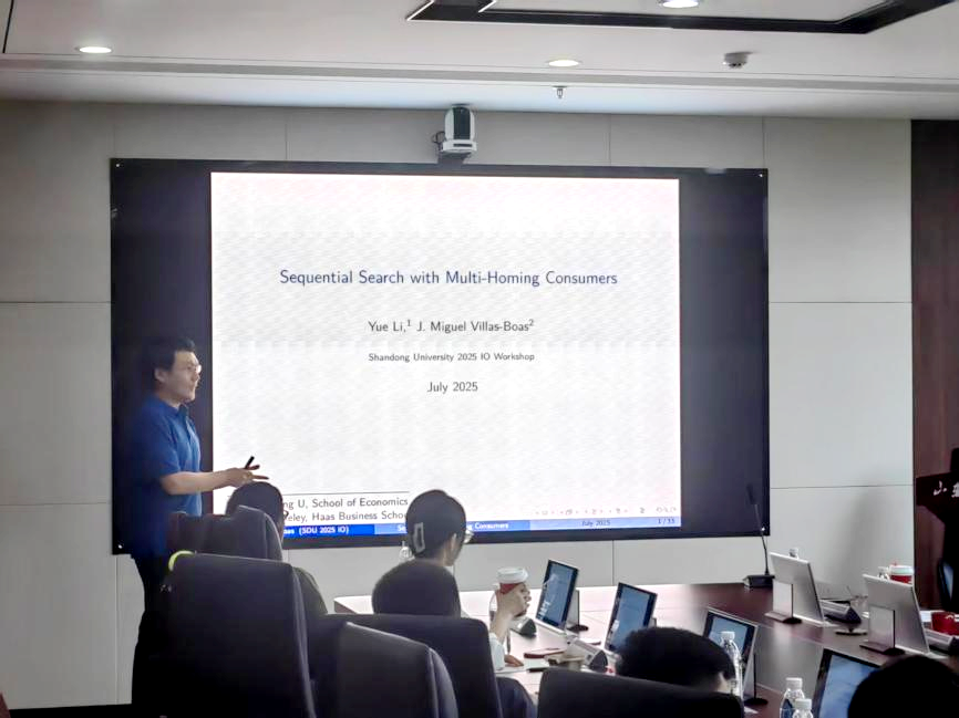 tyc41183太阳成集团助理研究员李越作“Sequential Search with Multi-Homing Consumers”报告。研究分析了消费者在零售平台和公开市场的搜索行为,尤其关注平台推送精准度对消费者决策的影响。同时刻画了均衡时零售平台最优佣金及利润,指出均衡时,随着推送精准度上升,零售平台利润递增,平台内单个企业利润递减,消费者剩余先增后减。